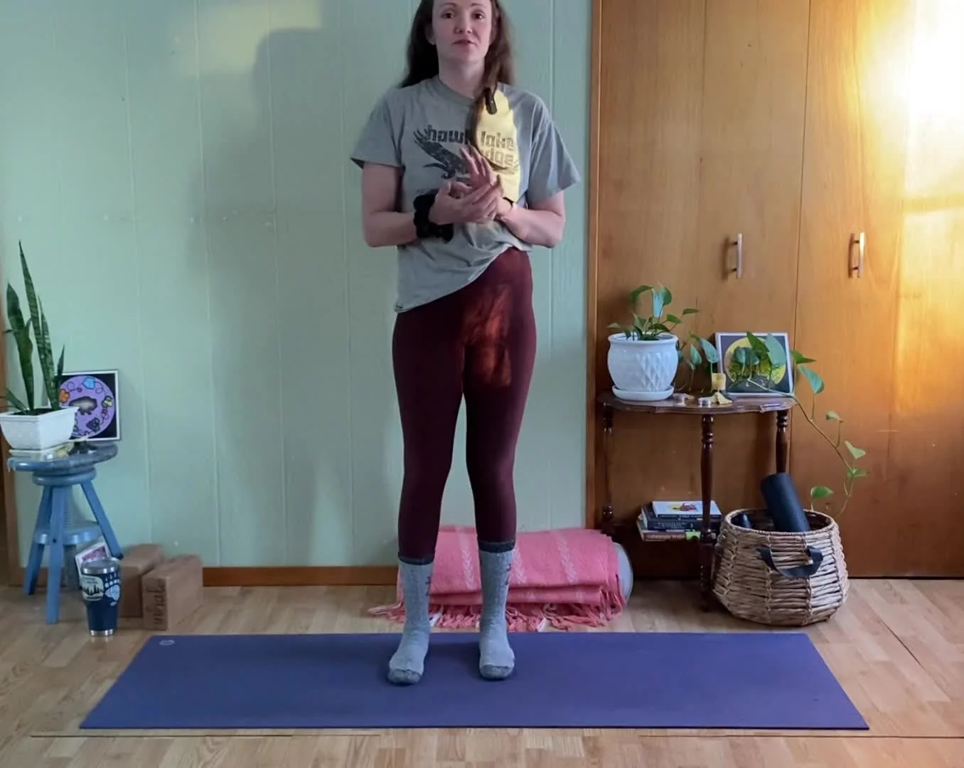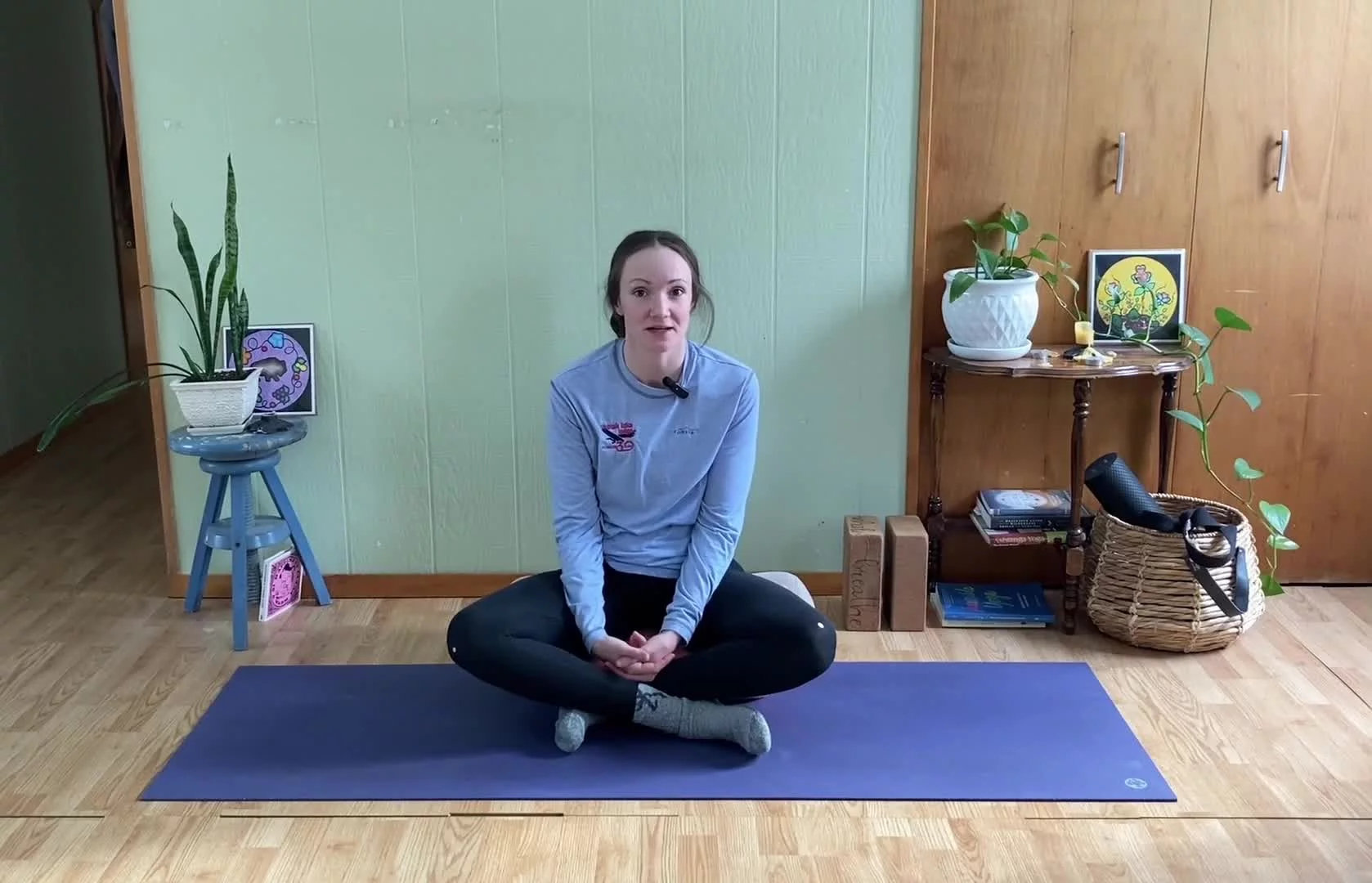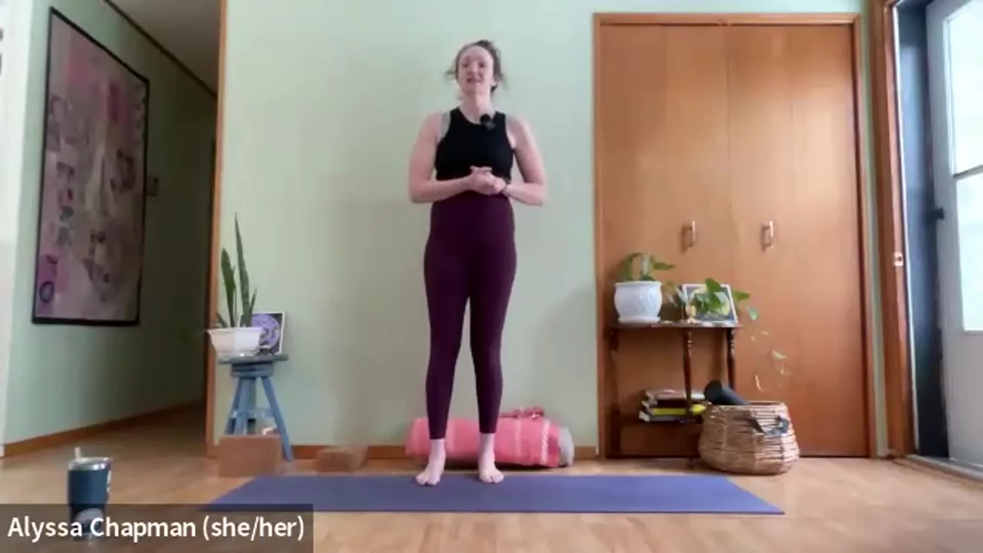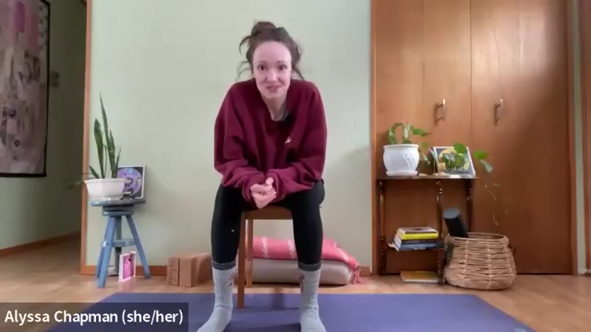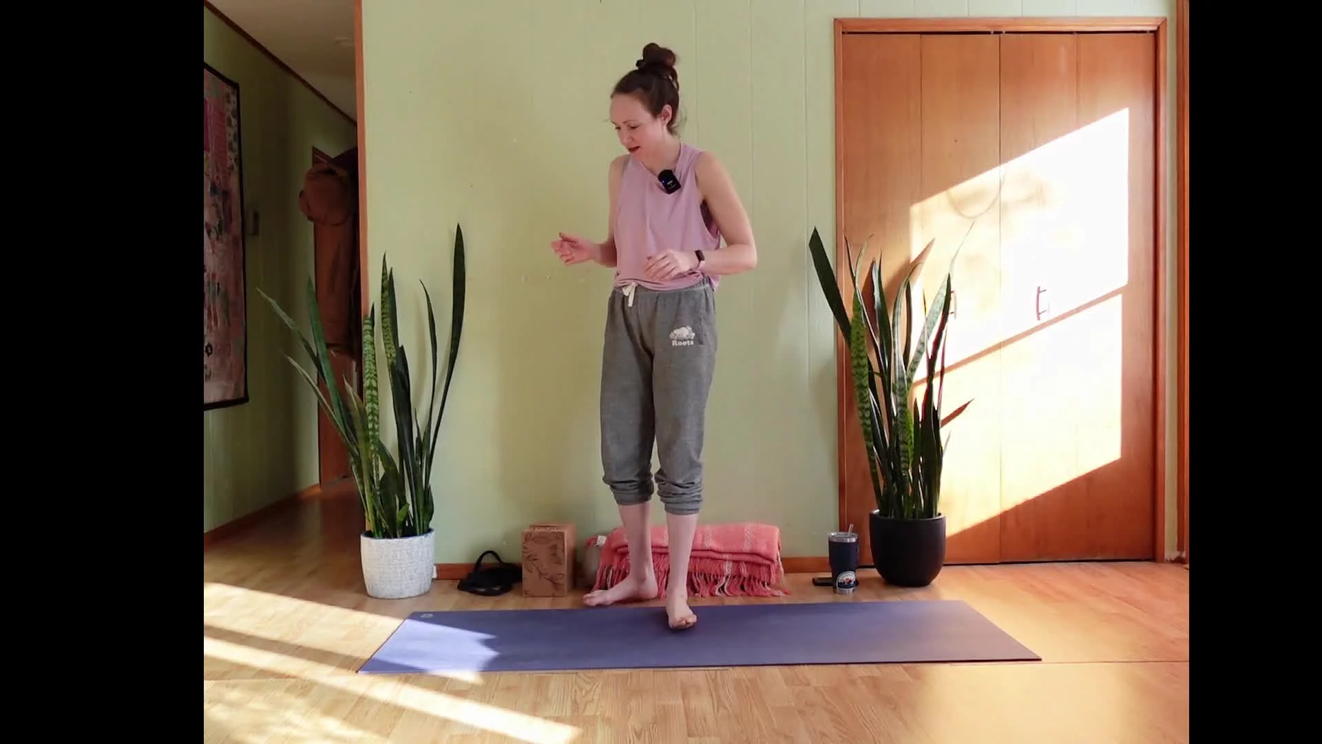 Starting on our feet with lots of movement and breath, moving down to some deep hip exploration where blocks or extra height may be useful, and landing on our backs where you might like your softer cozy props. About 3 min savasana with closing gratitude & final breath together.